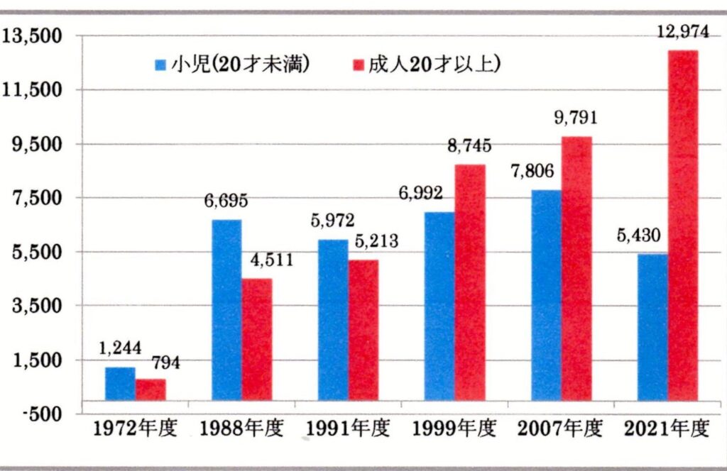 | (備 考)1972/4 小児ぜん息患者医療費支給制度施行 (12才未満)1988/3 同上 (20未満)1991/2 ぜん息等4疾病医療費助成制度施行1999/5 上記制度の拡充(居住年次)2007/1 成人ぜん患者医療費助成制度施行 |